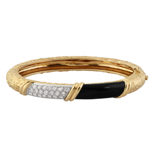 Contact for pricingVan Cleef & Arpels Gold Diamond and Onyx Bangle